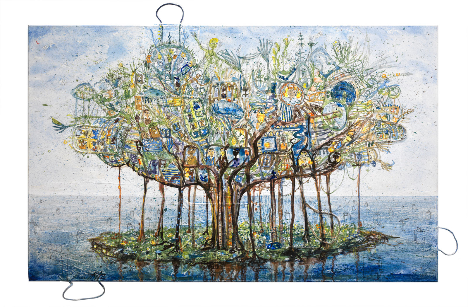 , 2021, ACRYL UND (TÜTEN)SÄCKE AUF LEINWAND, 100 × 160 CM